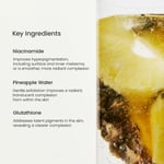 - Formulated with 2% niacinamide, 10% pineapple extract, and 99% glutathion: this powerful combination of ingredients works synergistically to reduce hyperpigmentation, gently peeling dead skin cells, and provide antioxidant protection for a clearer, more even skin tone.