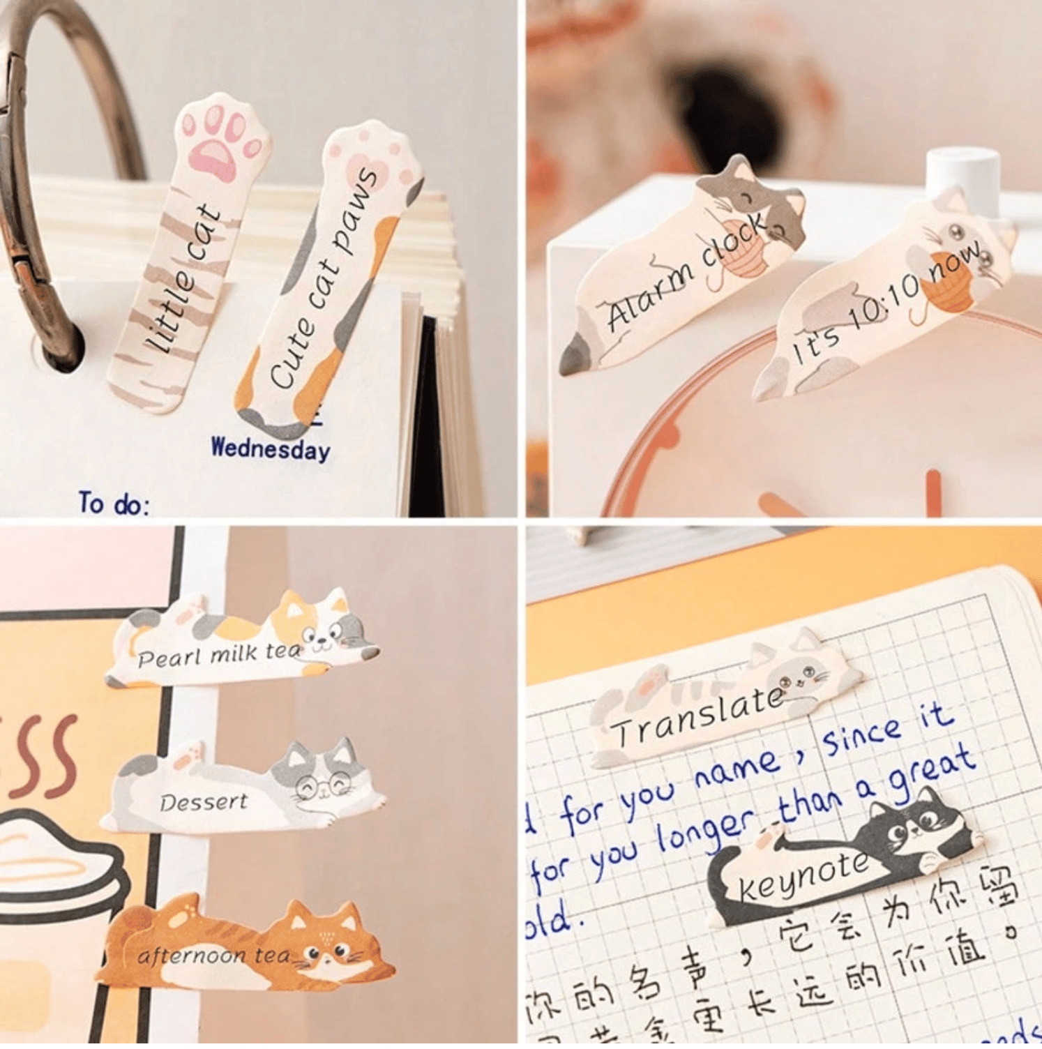 A whole parade of tiny cartoon cats ready to help you stay organized. These colorful index sticky notes make studying, planning, and bookmarking feel a little more fun, with bright tabs that peek out from your pages like cheerful little helpers. Cute, practical, and easy to use, they turn everyday notes into something playful and tidy.