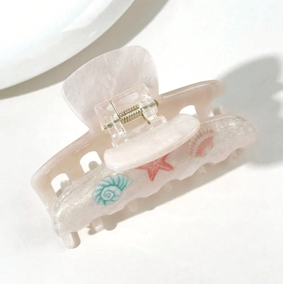 Ocean Starfish Hair Claw ๐โกโโโหโน เฟA dreamy seaside-inspired hair claw that feels like a little treasure from the beach. With its colorful starfish and seashell details in a soft sand-white tone, this oversized clip brings ocean vibes to your everyday look. The pearl-like finish adds a gentle shimmer, while the sturdy design keeps your hair secure and comfortable all day