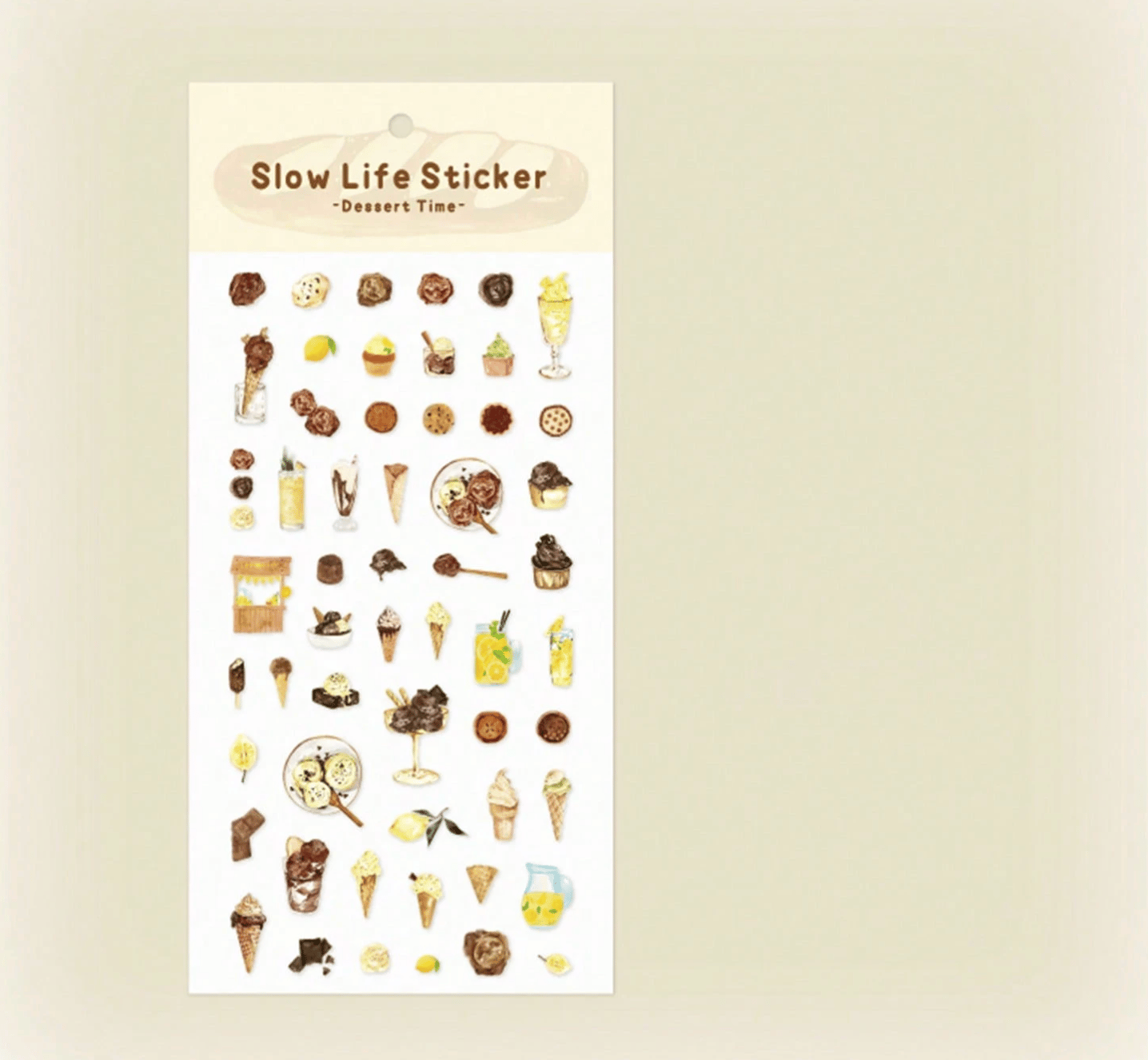 The Dessert Time stickers from the minimalist brand Slow Life feel like a calm afternoon spent enjoying tiny sweets and warm moments. With their soft, simple style, they add a gentle touch of cuteness to your journal, planner, or letters β like a peaceful snack time you can carry anywhere.