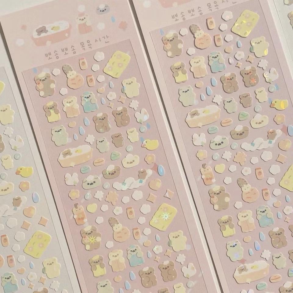 Pastel Bath Time Bear Sticker Sheet⋆˚。⋆୨୧˚