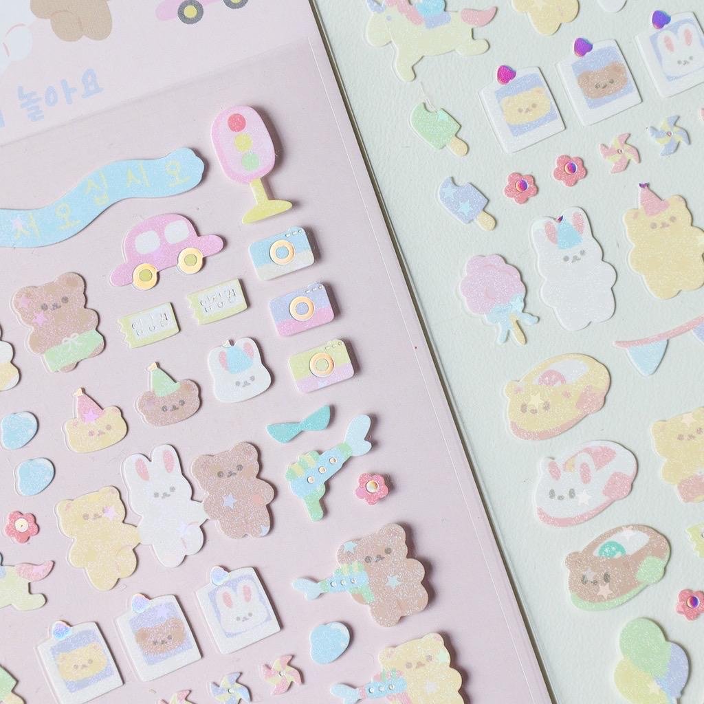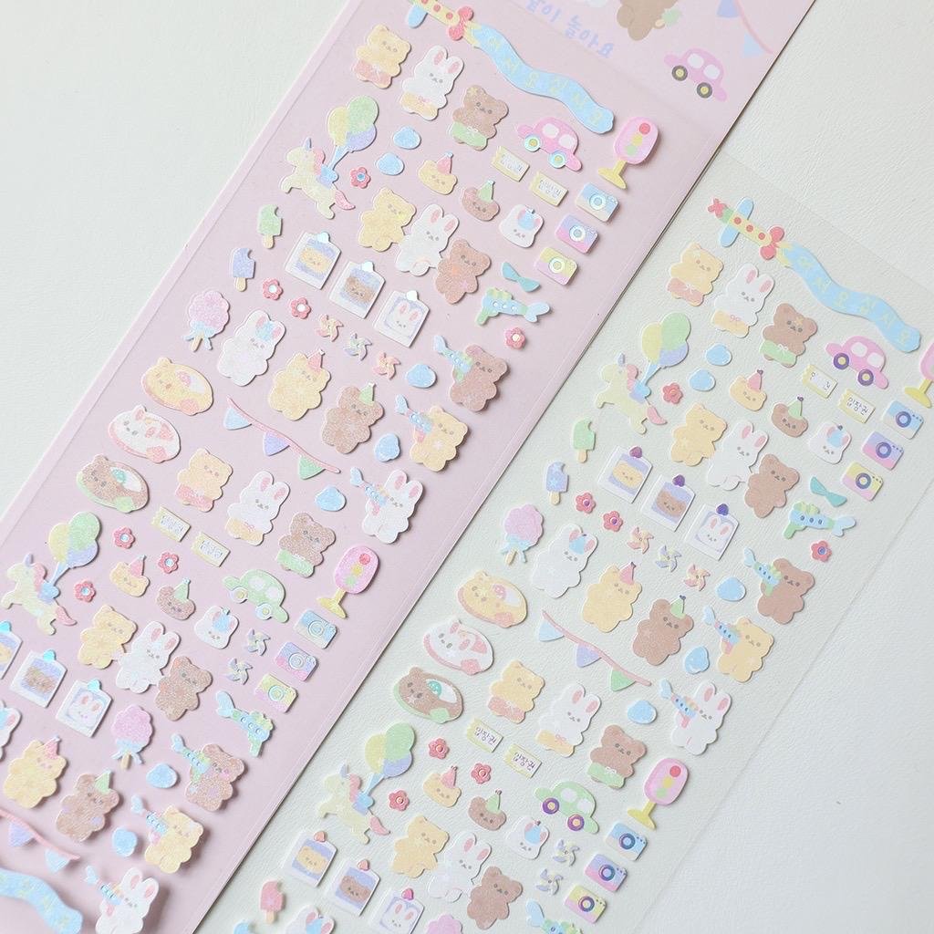 Step into a tiny wonderland filled with spinning rides, sweet treats, and magical fair lights. This adorable Volzzi theme park sticker sheet captures the joy of a fun day at the amusement park; laughter in the air, music playing in the background, and that dreamy feeling of being somewhere playful and carefree. The holographic shine adds a little extra sparkle, just like fireworks lighting up the night sky after a perfect day out